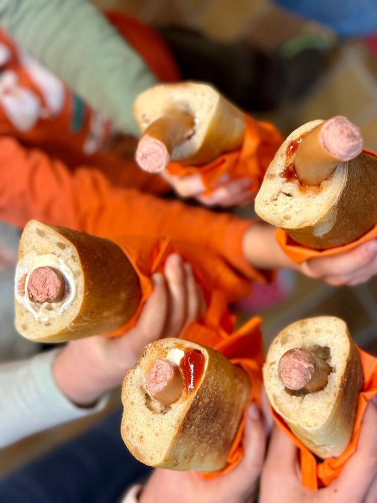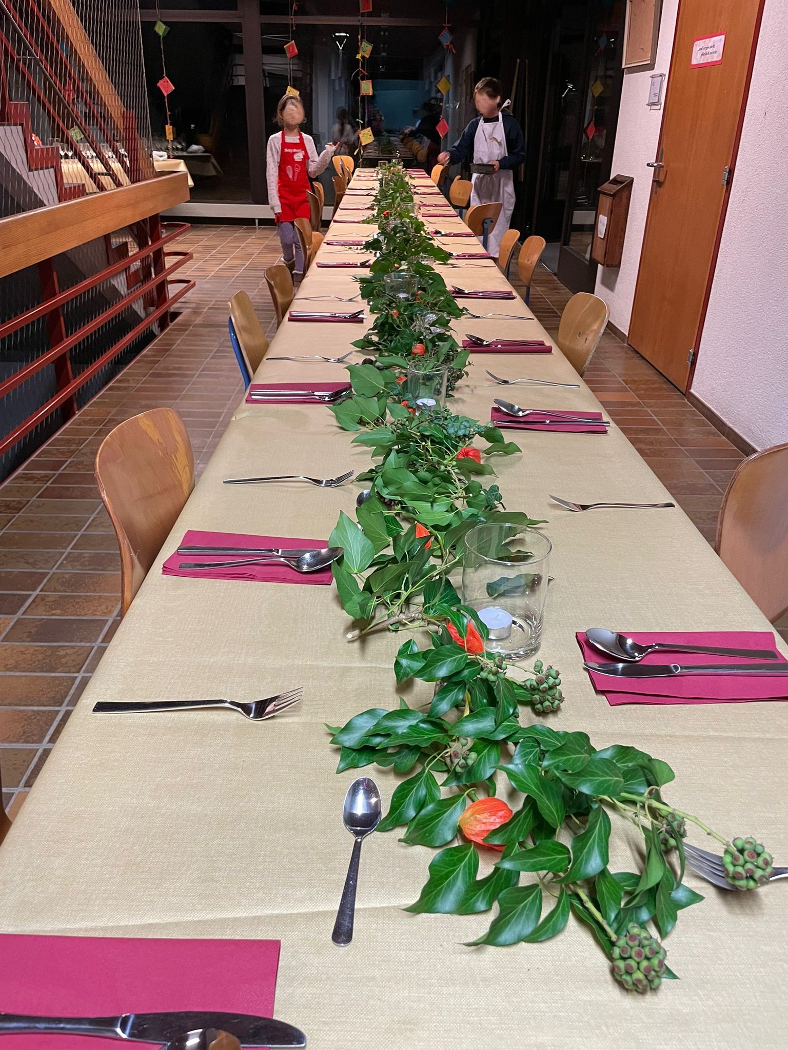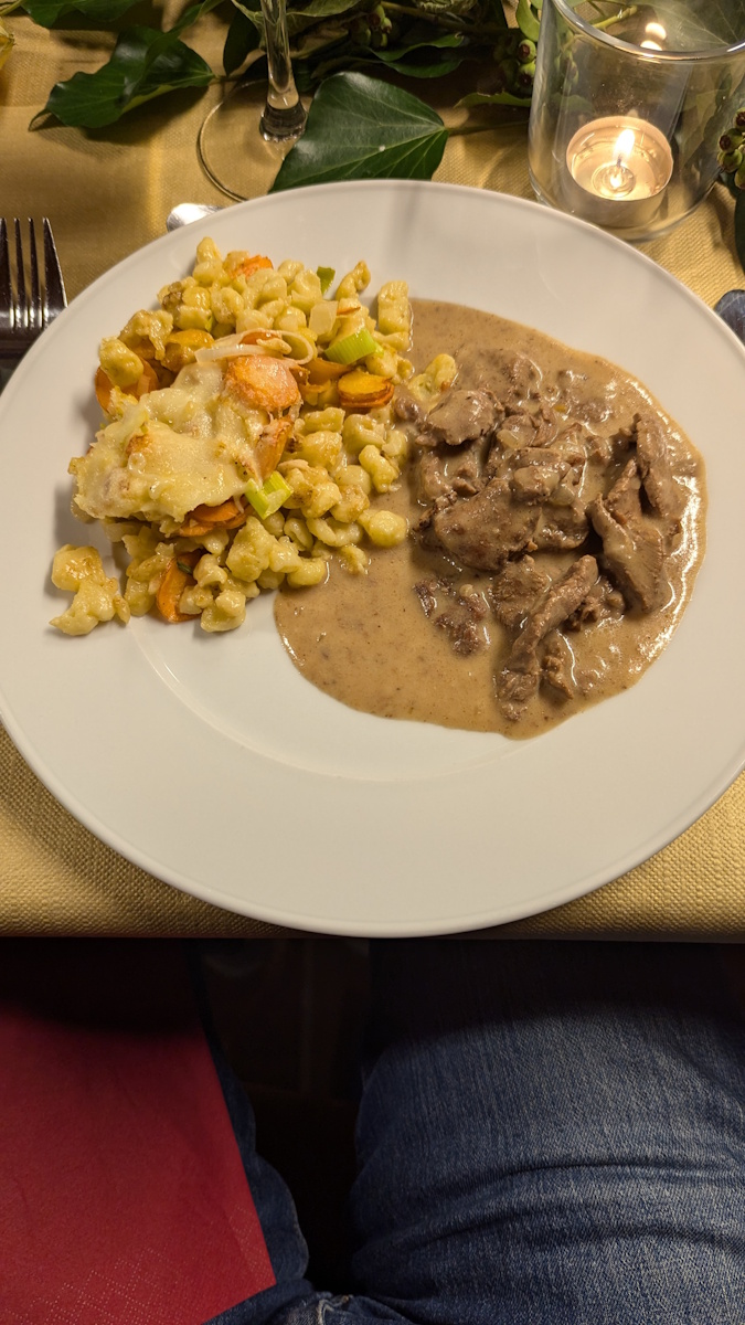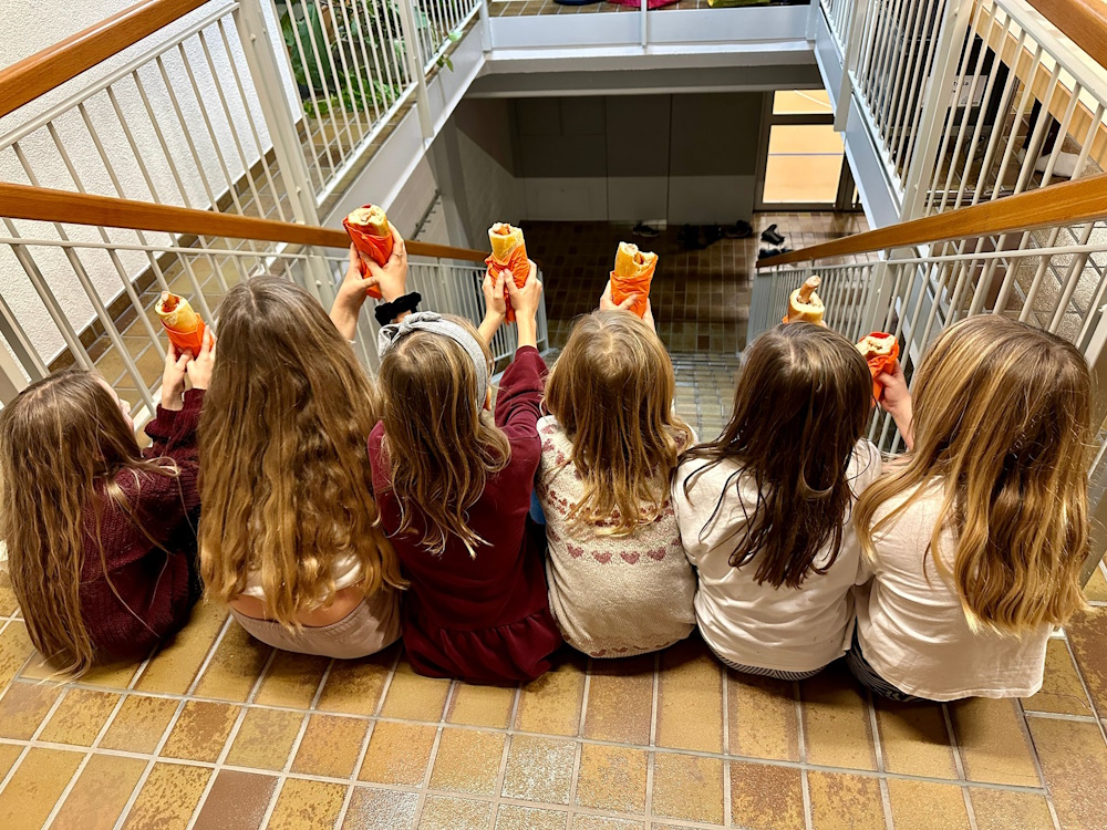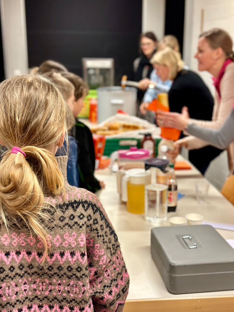 Es wurde fleissig gerüstet, geschnipselt, gerührt und natürlich probiert. Um 19 Uhr trafen dann endlich die eingeladenen Gäste ein. Die Kinder haben ihren Gast mit einem ebenfalls selbergemachten Apéro empfangen und ihnen den Platz am schön dekorierten Tisch gezeigt. Die Kinder konnten es kaum erwarten, bis sie ihren Gästen das Essen servieren konnten. Zur Vorspeise gab es eine Kürbissuppe mit Crème fraîche und Krönig-Pfäffer-Käse, zum Hauptgang wurde Rindsgeschnetzeltes mit Spätzli-Gemüse-Auflauf serviert und zum Dessert haben die Gäste und Kinder ein leckeres Orangen-Tiramisu genossen. Um 21.30 Uhr gingen alle mit vollen Bäuchen und unsere kleinen Köche mit einem stolzen Lächeln nach Hause.