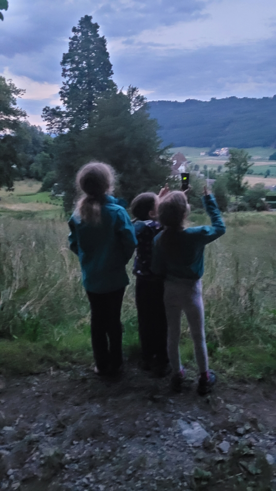 Wir konnten an diesem Abend vier verschiedene Fledermausarten sehen und hören (ja, deren Rufe können sogar Laien unterscheiden). Leider mussten wir schon bald die „Batscanner“ abgeben und uns auf den Heimweg machen. Beim Schulhaus warteten bereits die Eltern, die ihre müden aber äusserst zufriedenen Kinder in Empfang nahmen. Wir sind sicher, dass bei einigen Kindern auf der nächsten Geburtstags- oder Weihnachtswunschlisten ein solcher „Batscanner“ stehen wird.