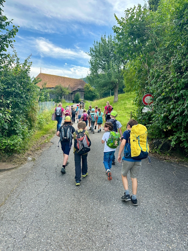 Aufgrund der hohen Sommertemperaturen verzichteten wir auf den Spaziergang in der Region Kirchdorf und haben stattdessen die Vögel rund um den Schulhausplatz gesucht und mit dem Feldstecher beobachtet.