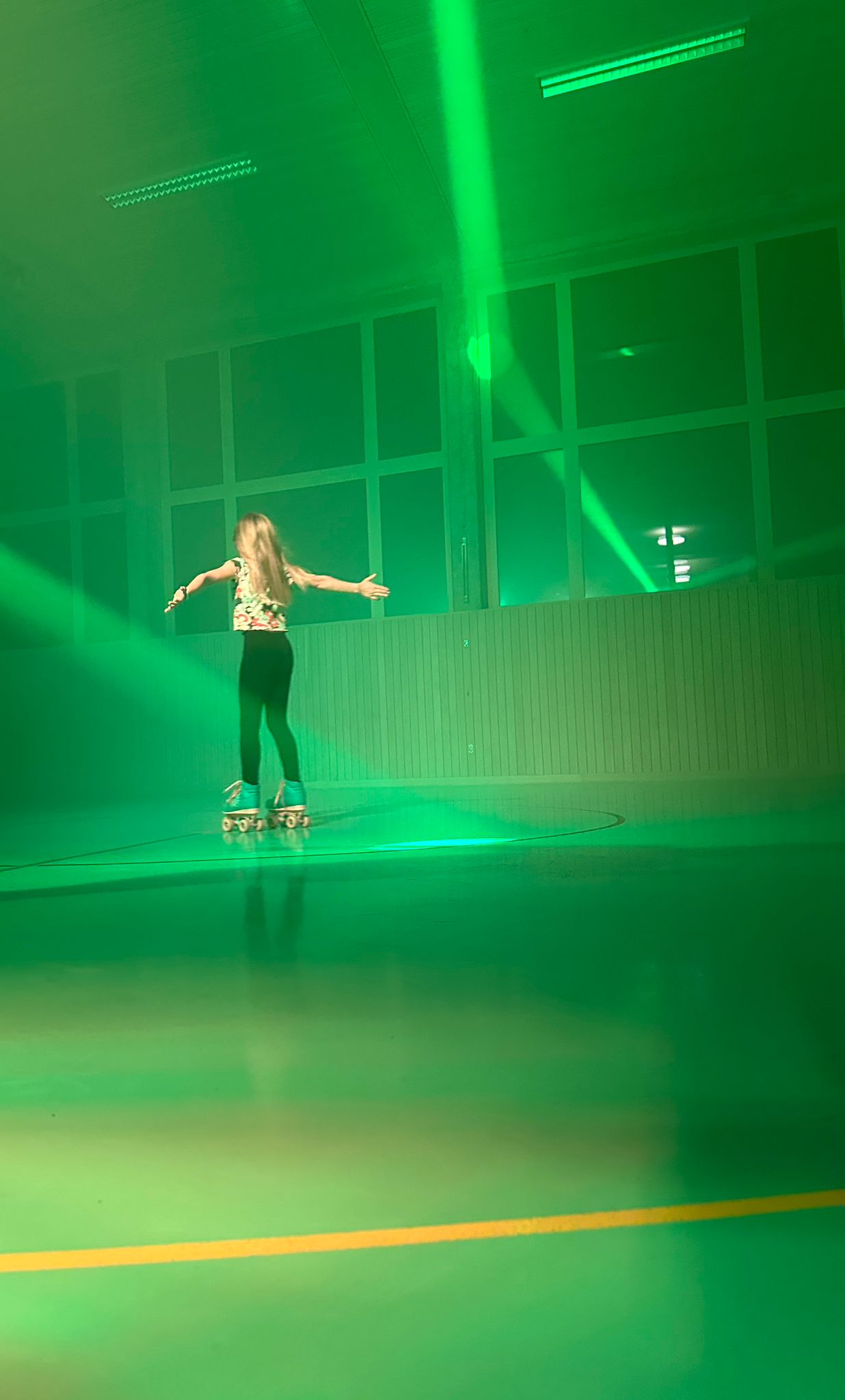 Zu den Musikwünschen von 1980 bis heute wurde gerollt, getanzt und getrickelt. Zur Stärkung gab es im Foyer etwas zu Trinken und zum «Schnousen», damit im farbigen Blinklicht und Nebel zu «fätziger» Musik wieder weiter gerollt werden konnte.