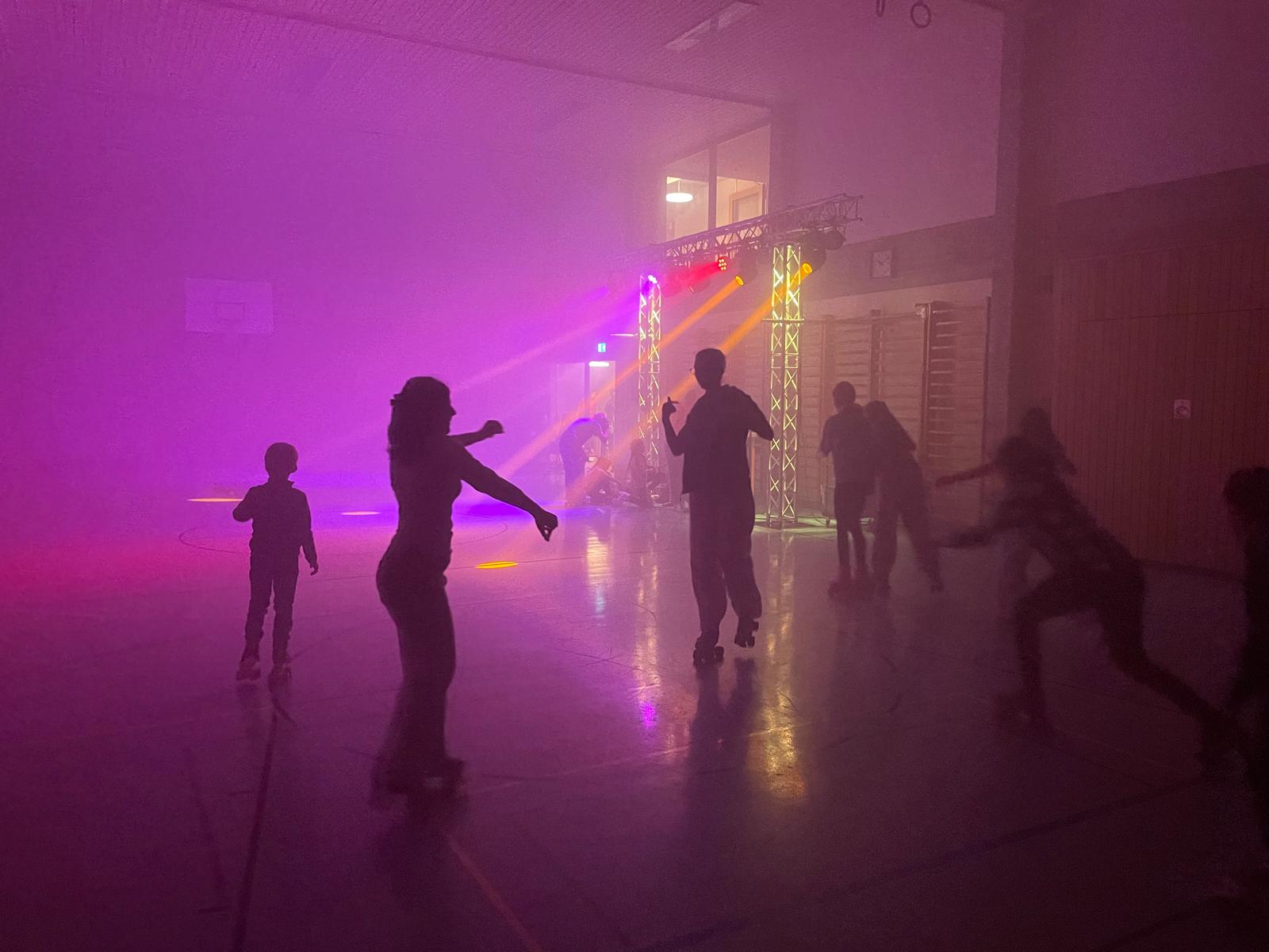 Mit der Rollerdisco haben wir uns für einen Event entschieden, welcher für jung und alt sicher ein Erlebnis wird. Mit einem Schwedenkasten-DJ-Pult, einem professionellem Lichtbalken und einer Nebelmaschine haben wir die Turnhalle Gerzensee in eine Disco verwandelt.