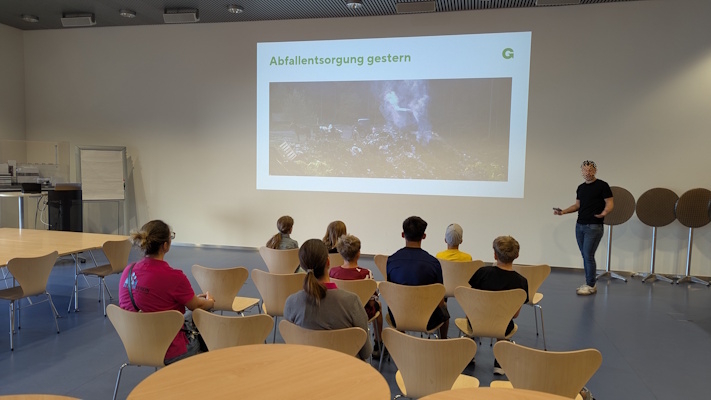 Nach einer kurzen Begrüssung durch Pascal Bercher schauten wir im Seminarraum einen Film zur Geschichte und dem Aufbau der AVAG, sowie allgemeine Informationen zur Kehrrichtentsorgung, an. Nach einem kurzen Znüni startete der Rundgang durch die Kehrichtverbrennungsanlage Thun.